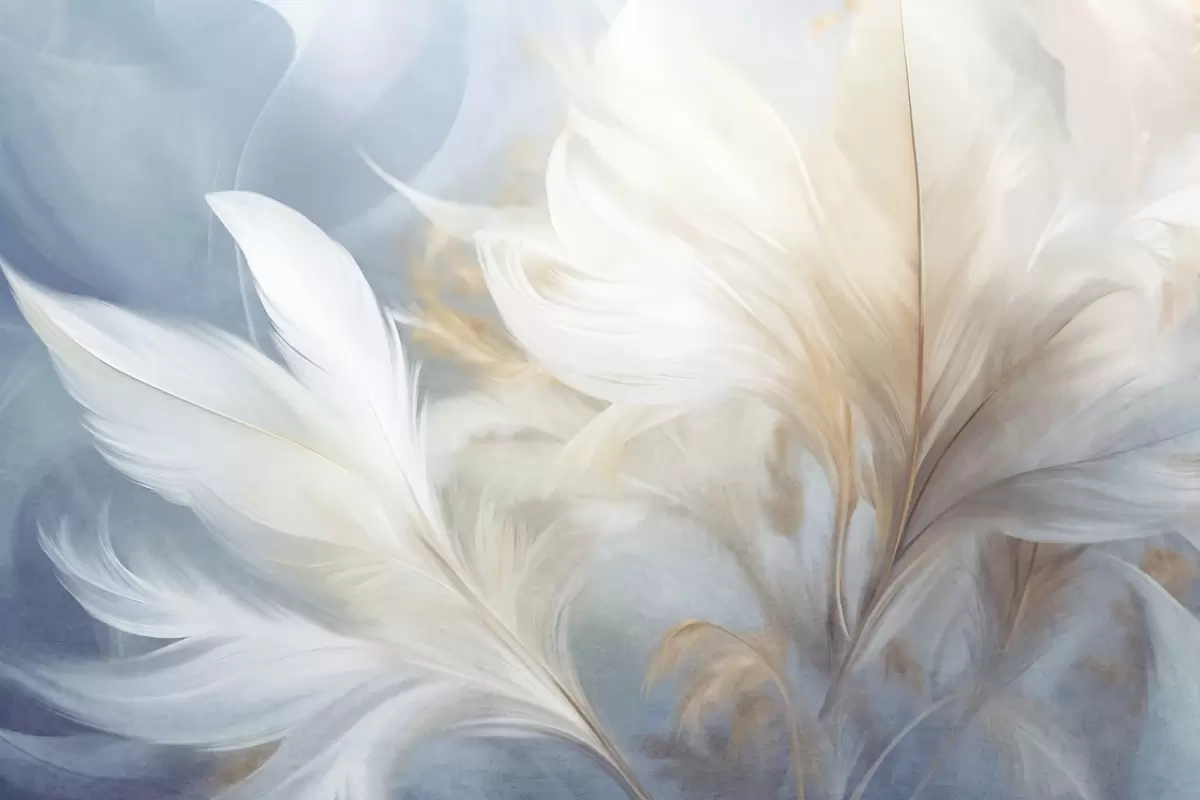 Fototapeedid Tekstuuriga pehmed valged suled ja ähmane pampasrohi sinisel ja valgel taustal Nr w09758