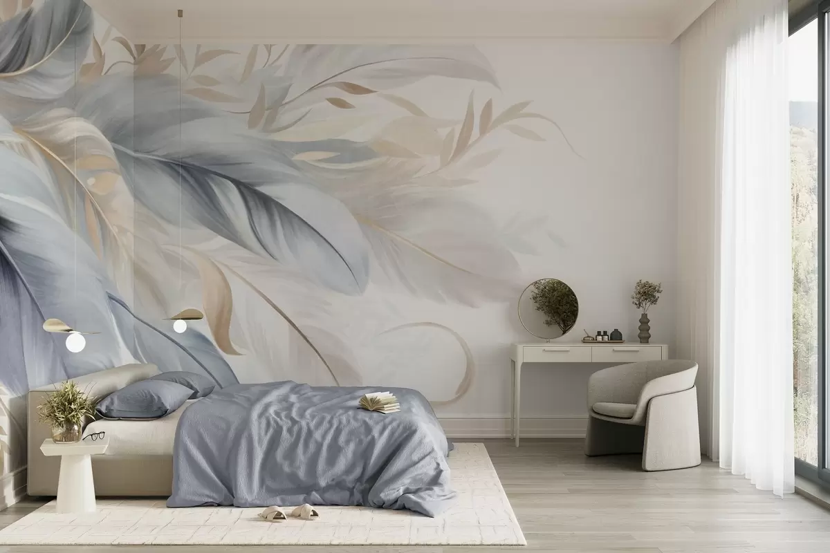 Fototapeedid Tekstuuriga pastelltoonides suled ja õrnad lehed heledal taustal Nr w09763