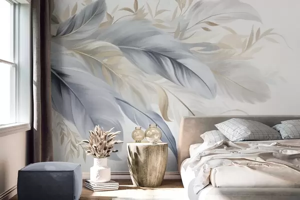 Fototapeedid Tekstuuriga pastelltoonides suled ja õrnad lehed heledal taustal Nr w09763