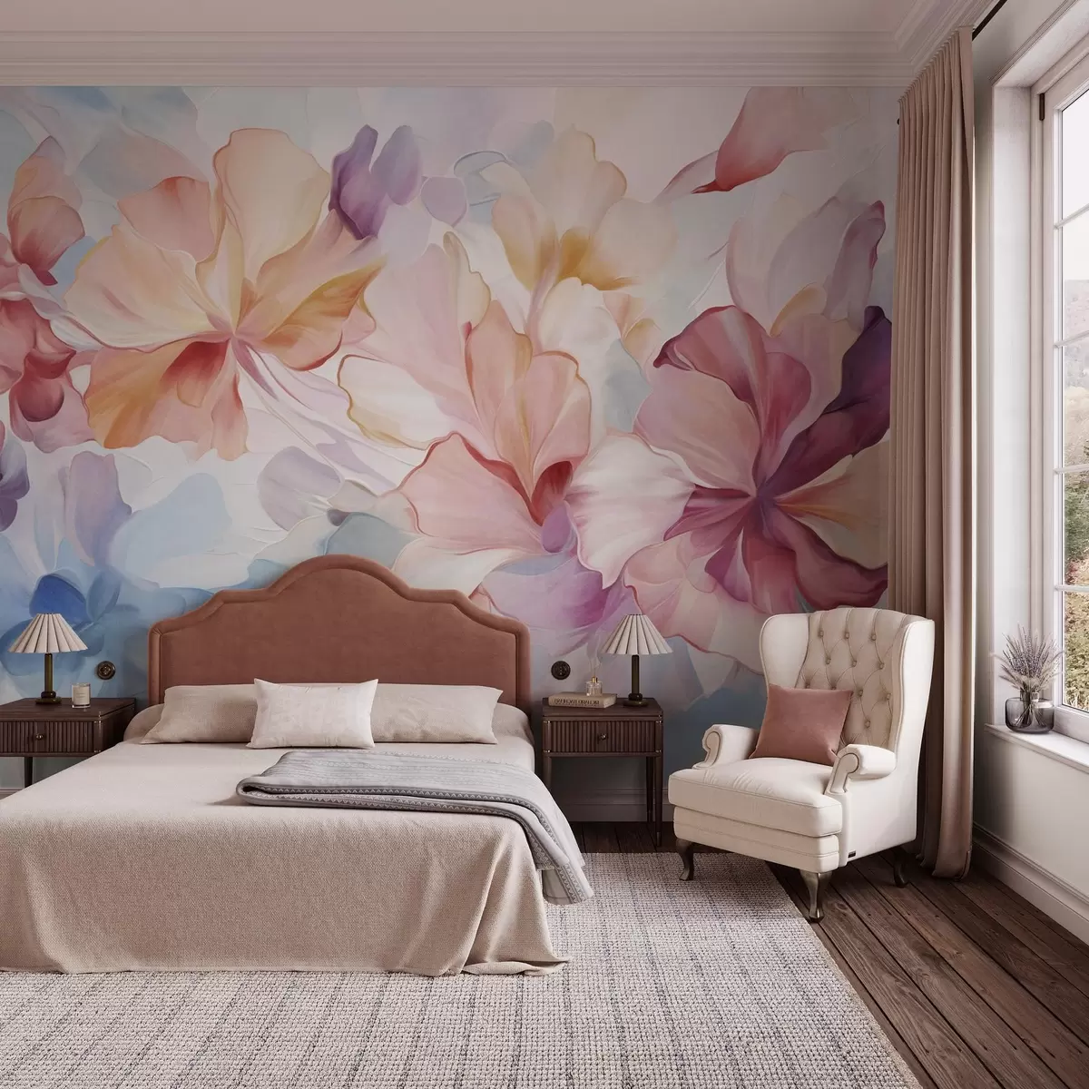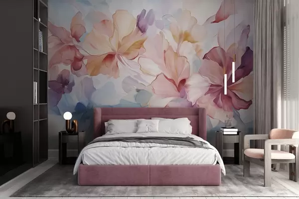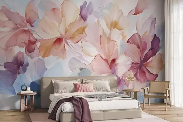 Fototapeedid Abstraktsed fantaasiaküljed roosa, virsiku ja lavendli toonides maalilises stiilis, tekstuuriga kunst Nr w09767