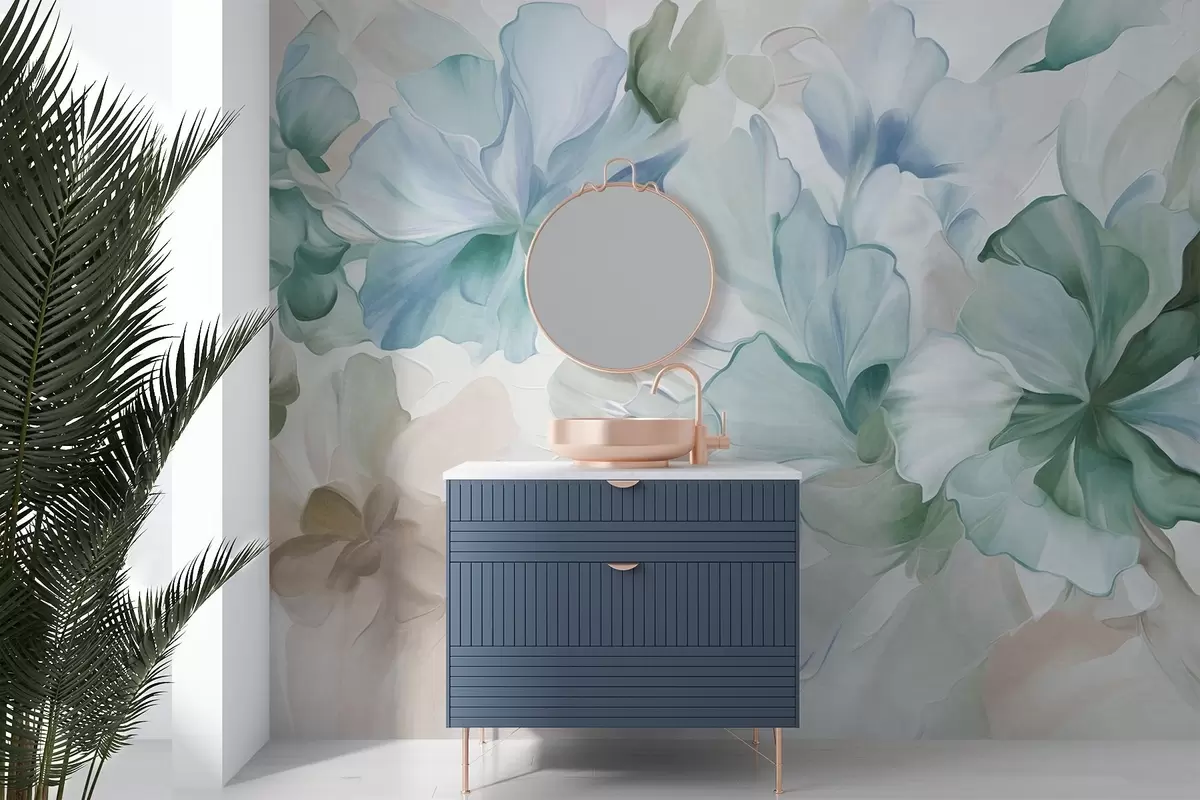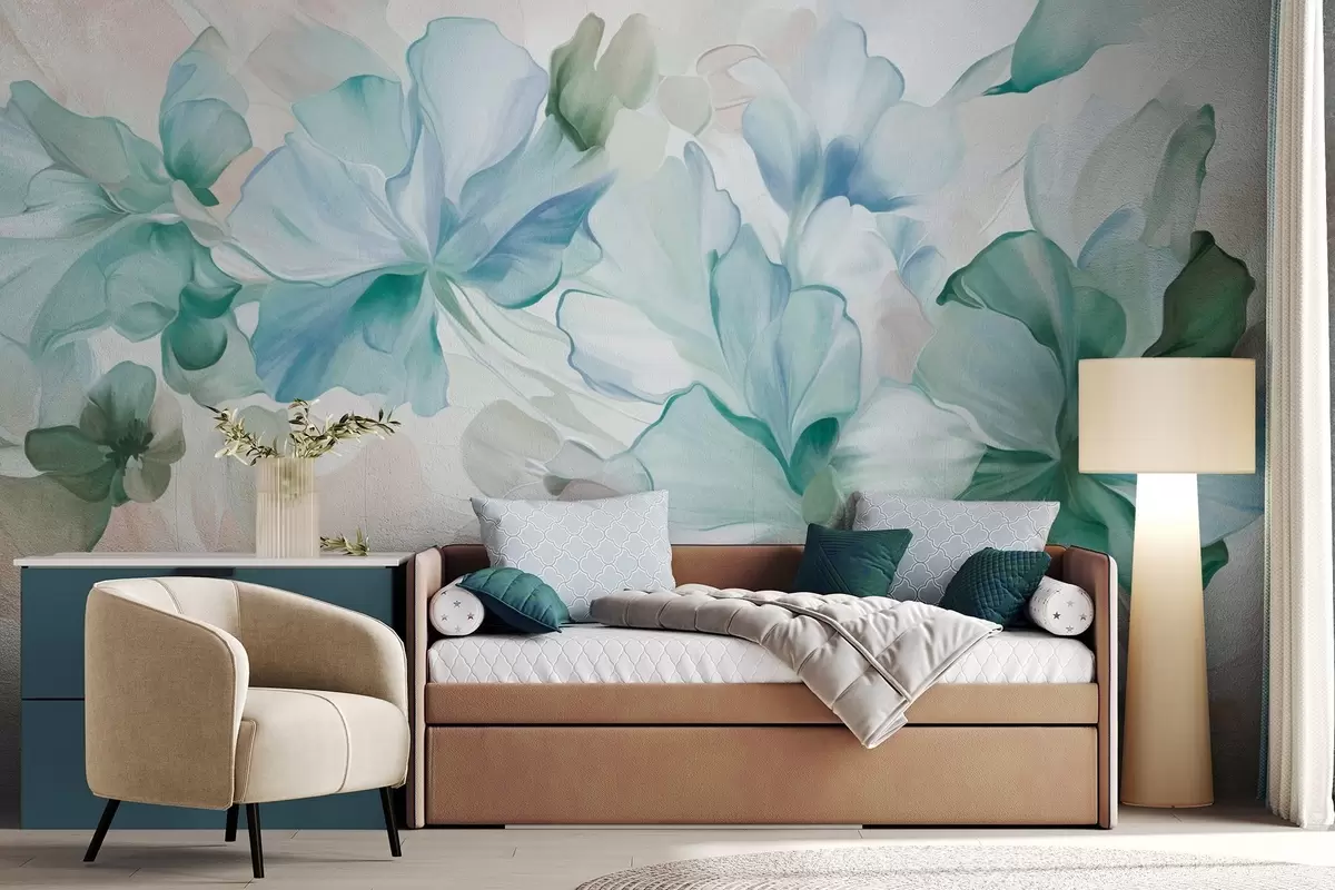 Fototapeedid Abstraktsed fantaasiaküljed rohelistes, sinistes ja beežides toonides maalilises stiilis, tekstuurne kunst Nr w09767v1