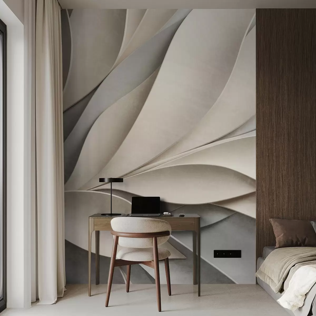 Fototapeedid Abstraktsed lehed beežis ja hallis, tekstuuriga modernne kunst Nr w09769