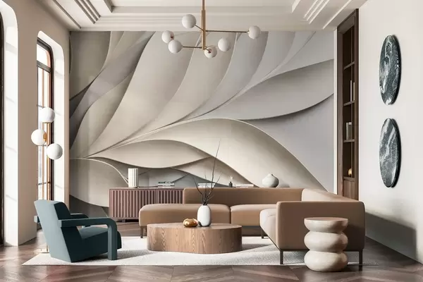 Fototapeedid Abstraktsed lehed beežis ja hallis, tekstuuriga modernne kunst Nr w09769