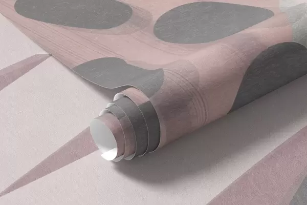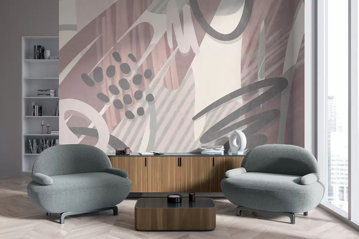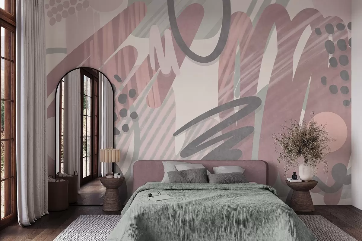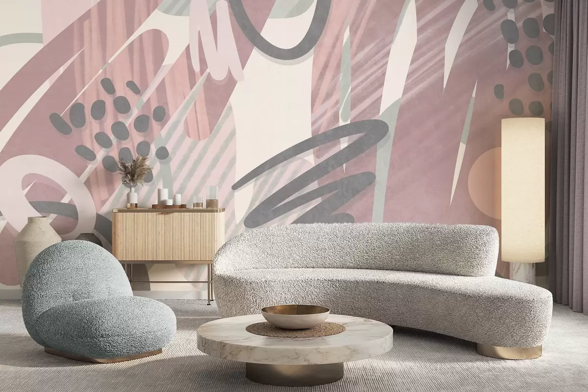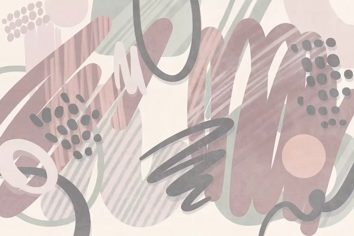 Fototapeedid Abstraktne tekstuurne trükis, millel on orgaanilised kujundid, kriipsud ja täpid vaoshoitud pastelltoonides Nr w09774v1