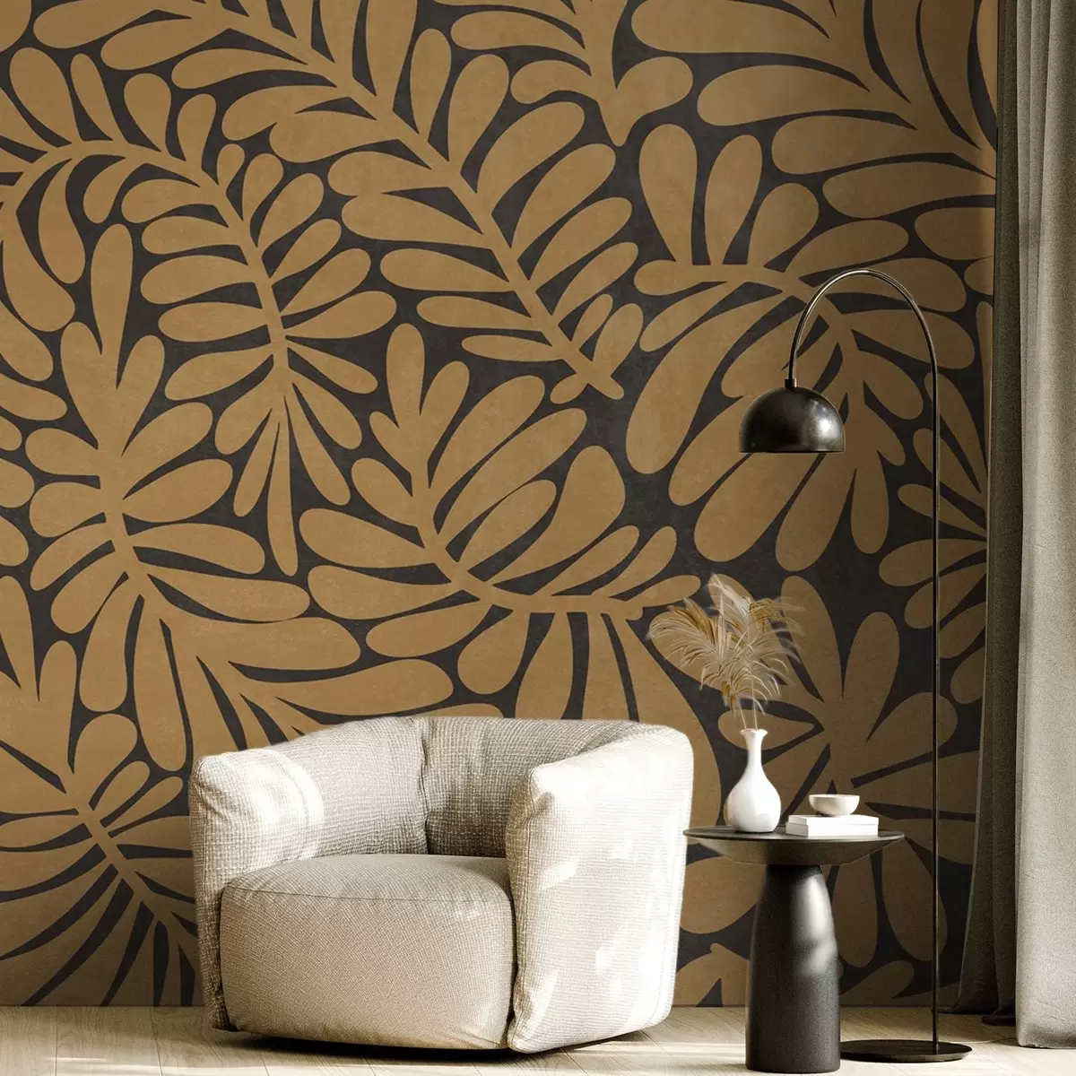 Fototapeedid Tumehalli taustal stiliseeritud sinepikollased lehed, tekstuuriga kunstiteos Nr w09775