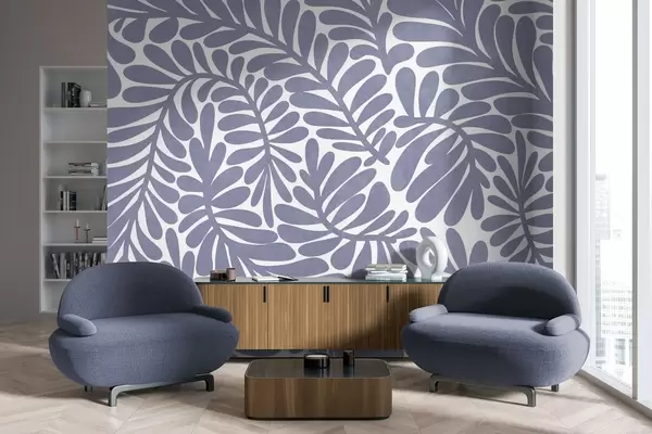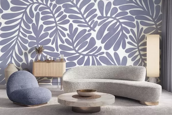Fototapeedid Hele sinised stiliseeritud lehed heledal taustal, tekstuuriga kunstiteos Nr w09775v1