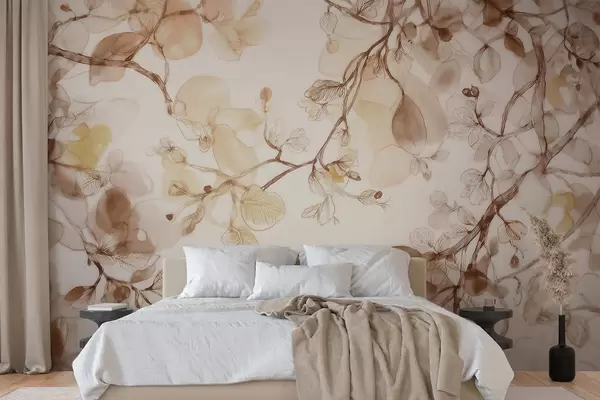 Fototapeedid Õhulised rippuvad oksad beežides toonides akvarellistiilis Nr w09795