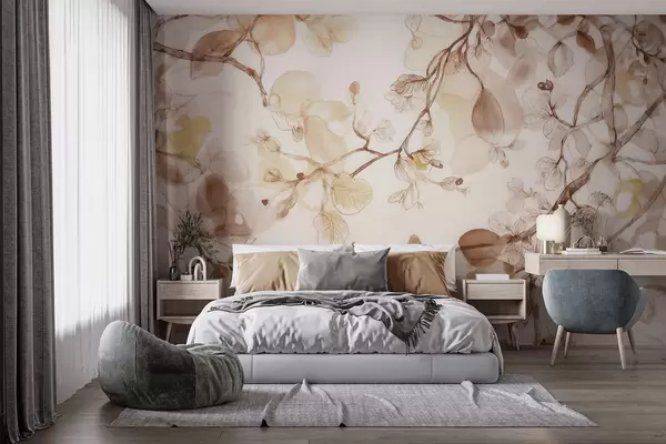 Fototapeedid Õhulised rippuvad oksad beežides toonides akvarellistiilis Nr w09795