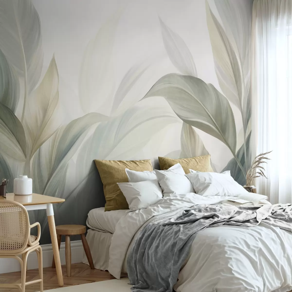 Fototapeedid Suured, helerohelised troopilised lehed pehmetes pastelltoonides, tekstuurne kunst Nr w09816