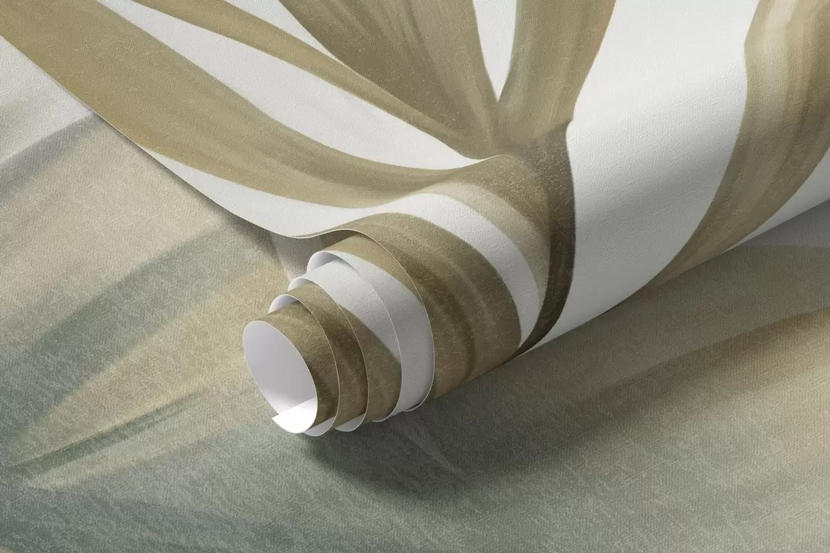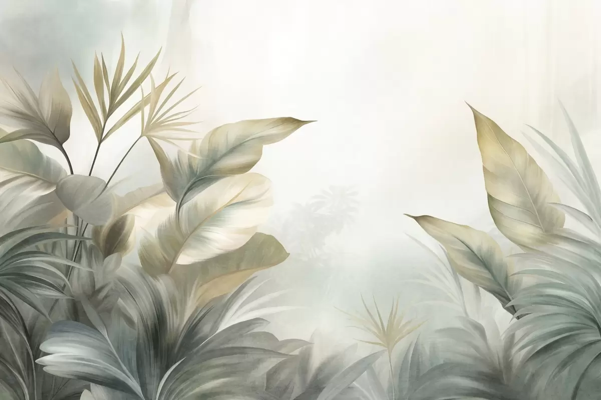 Fototapeedid Suured, tekstuuriga troopilised lehed vaoshoitud rohelistes ja beežides toonides, džunglikeskkond Nr w09820