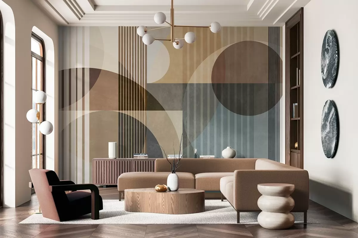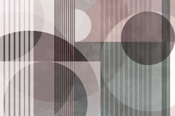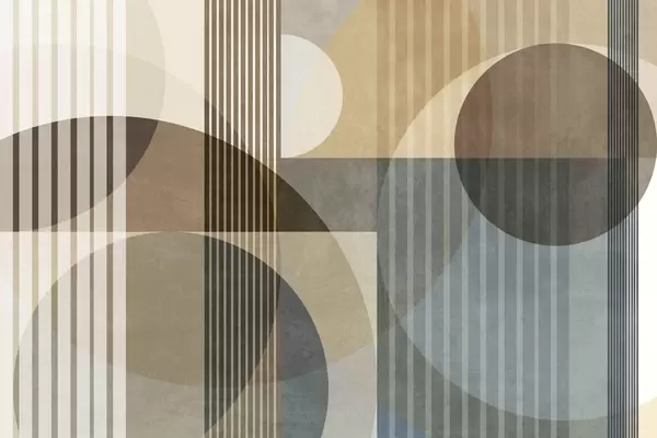 Fototapeedid Abstraktsed geomeetrilised kujundid ringide ja joontega, vaoshoitud maatoonid, tekstuurne, kihiline kompositsioon Nr w09834