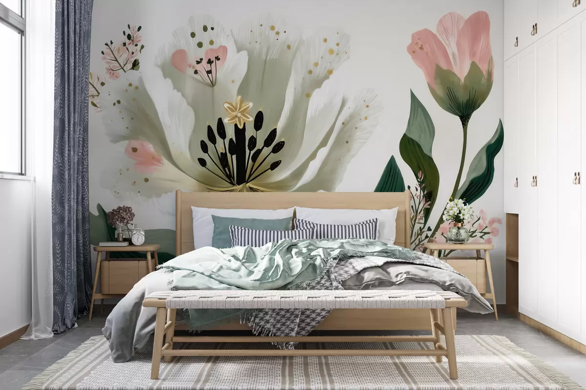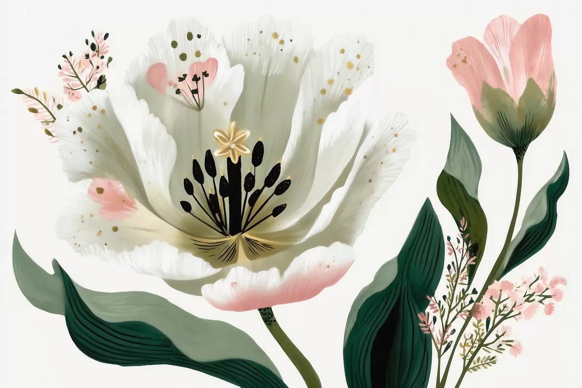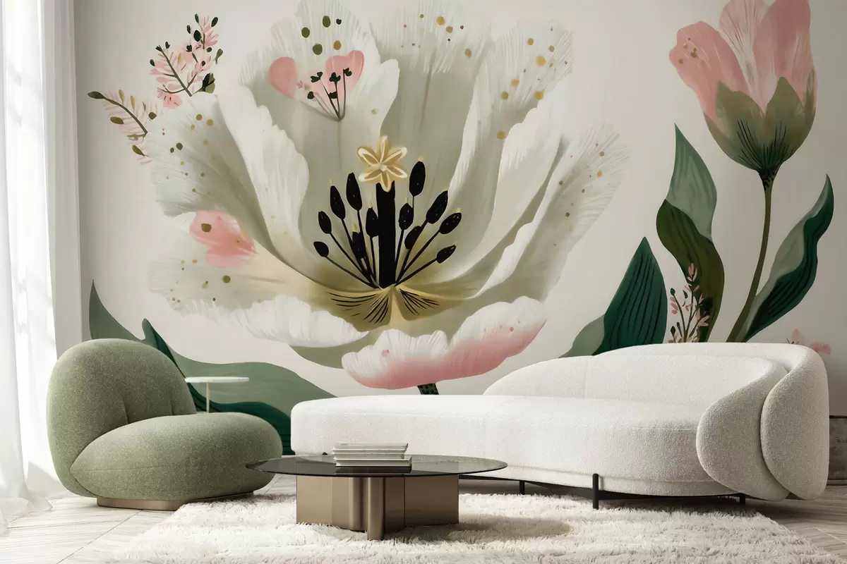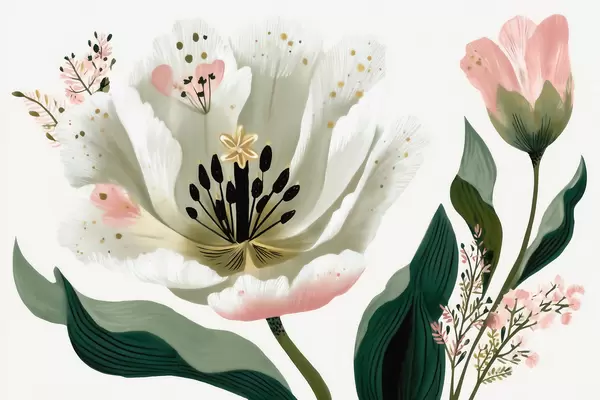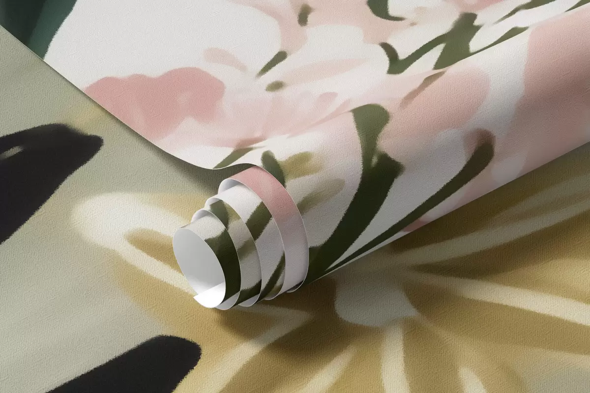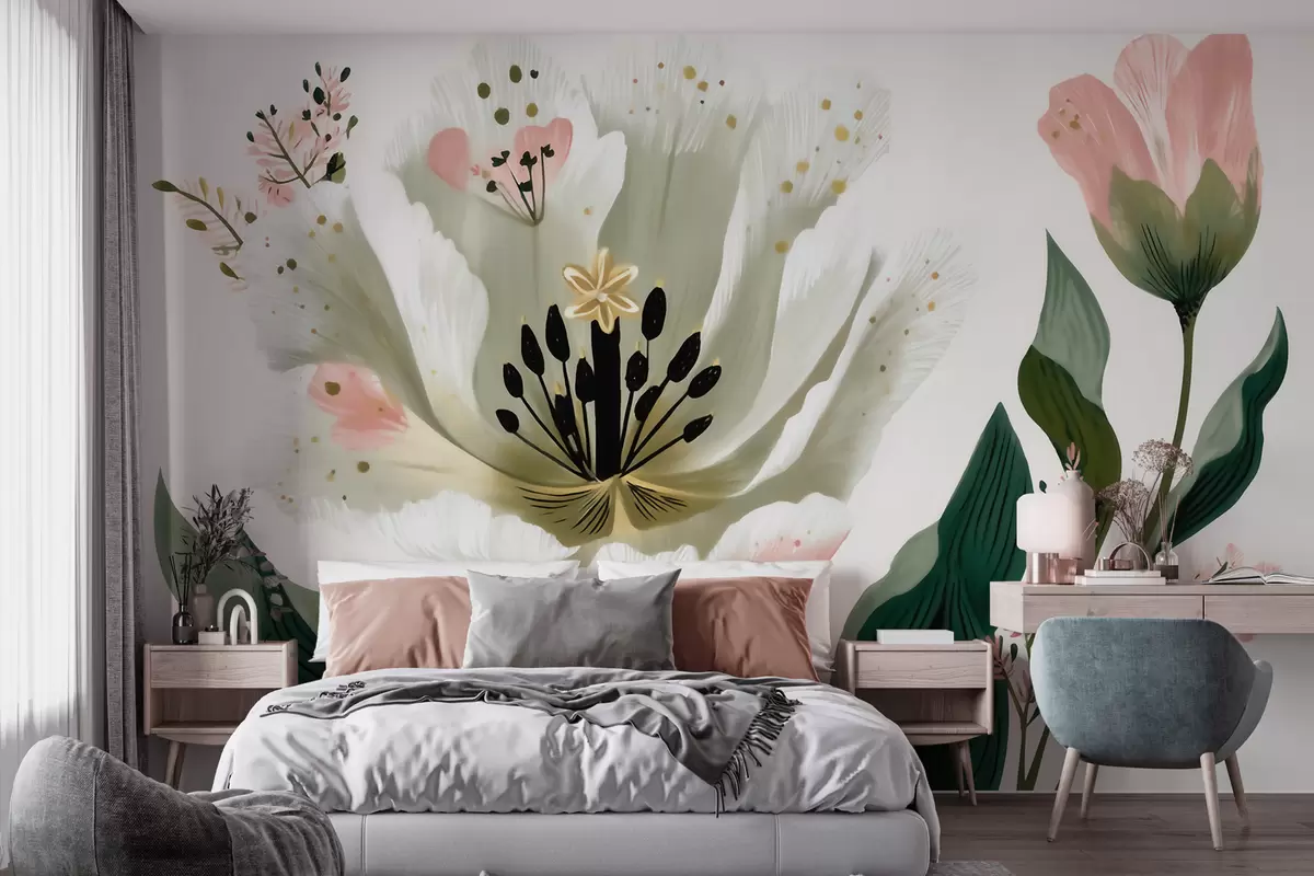 Fototapeedid Lill roheliste lehtede ja õrnroosade detailidega akvarellistiilis Nr w09836