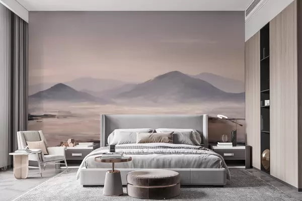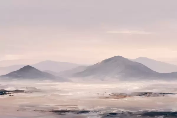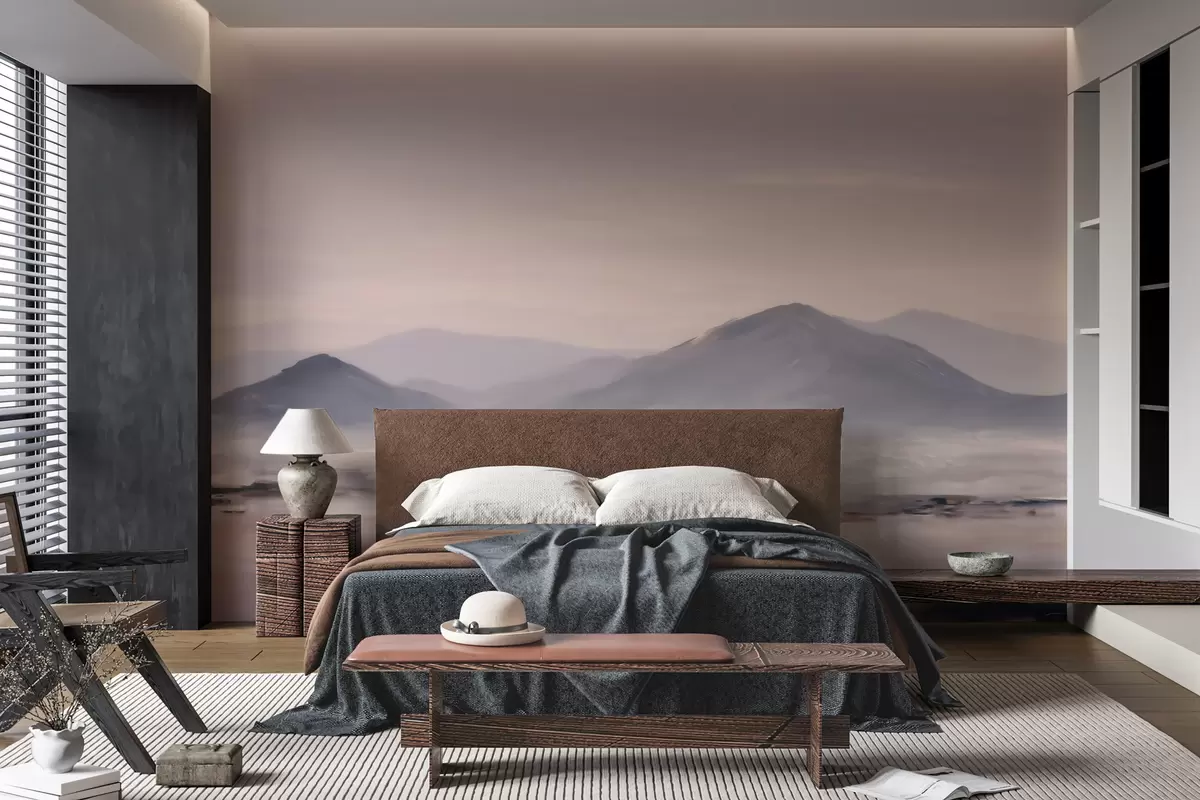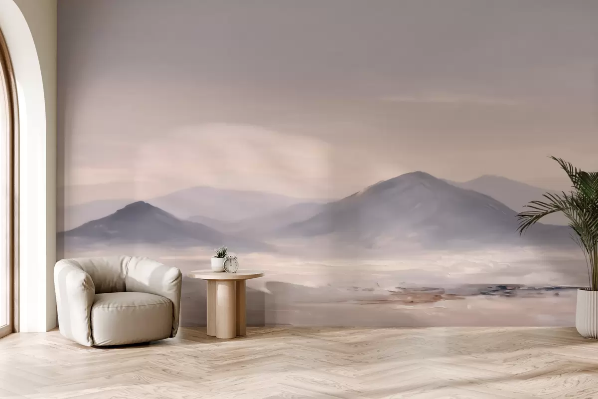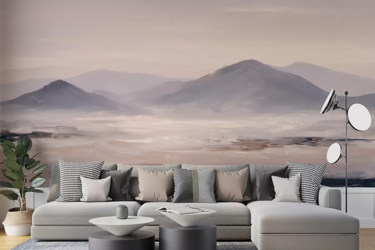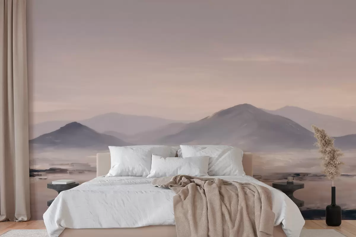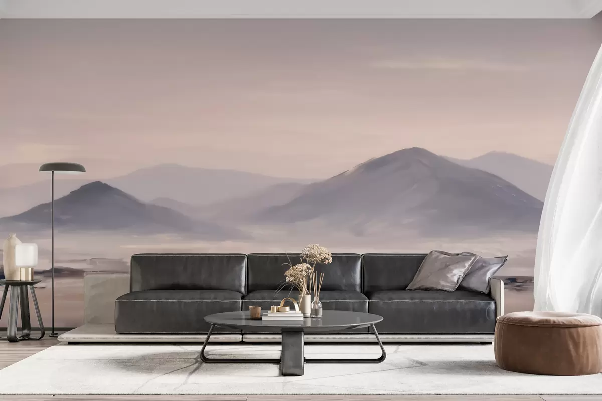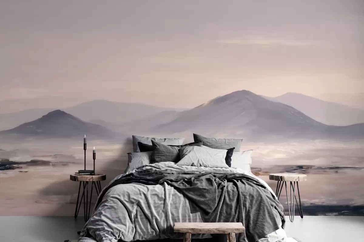 Fototapeedid Uduvõrk mägimaastik, kus valgus ja õhk sulanduvad pehmelt, tekitades maski meenutava efekti Nr w09844
