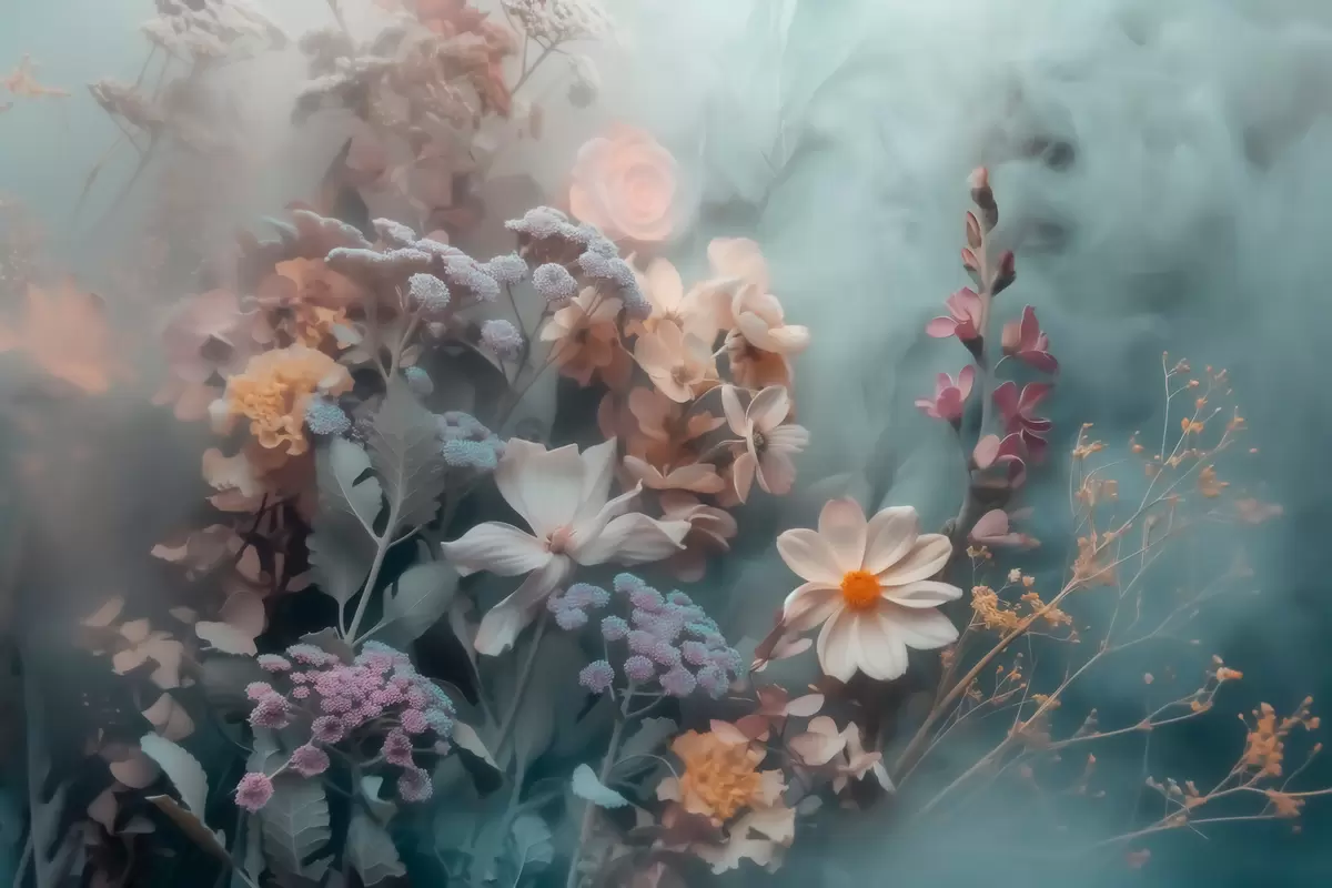 Fototapeedid Unistav looduslillede kompositsioon pastelltoonide õrnas udus Nr w09846