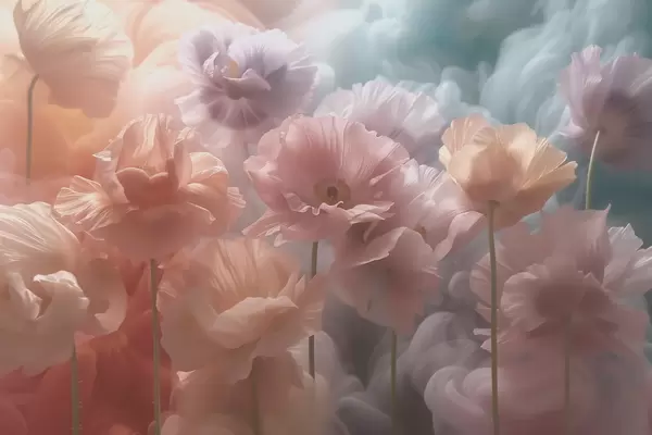 Fototapeedid Õhulised lilled läbipaistvate kroonlehtedega pehmes hommikupäikeses Nr w09847