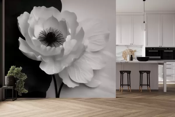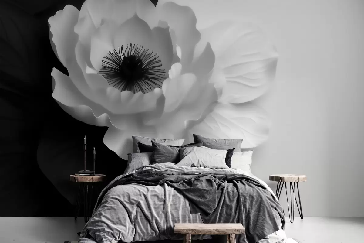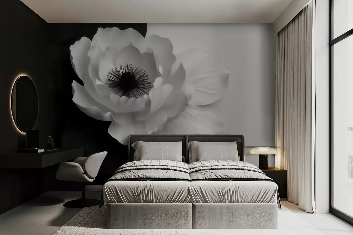 Fototapeedid Kontrastne valge õis tumeda südamikuga mustvalgel taustal Nr w09852