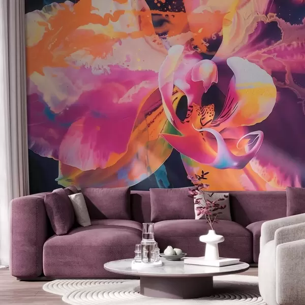 Fototapeedid Elav abstraktne orhideeõis, millel on rikkalikud värvid ja dünaamilised vormid akvarellistiilis Nr w09855