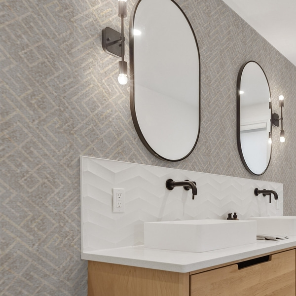 Sümmeetriline lilleornament hallil taustal diagonaalidega