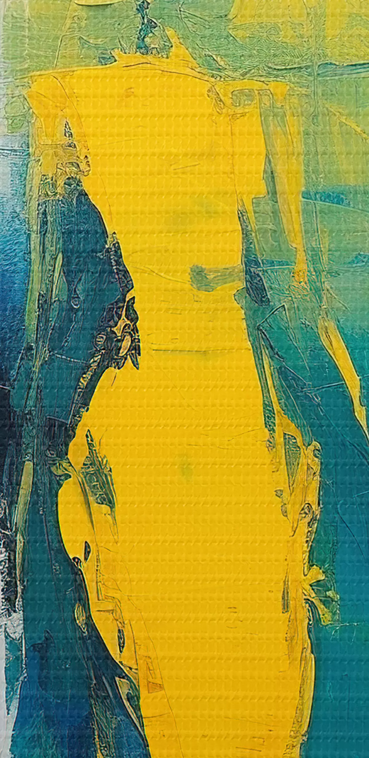 Selle lõuendi peenike niidipunus meenutab professionaalse kunstniku lõuendi pinda.