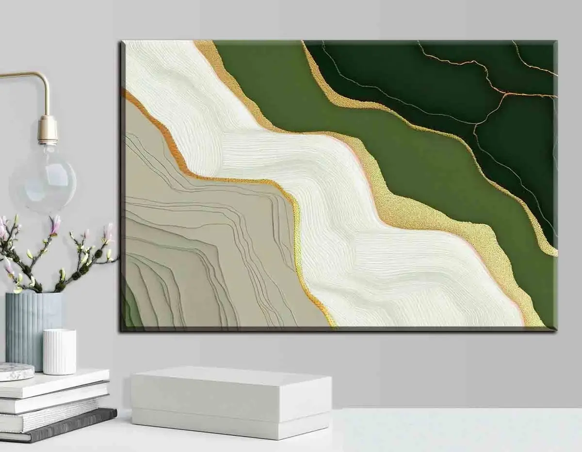 Maalid Abstraktne õlimaal musta, valge, rohelise ja hallide värvidega Nr s35427