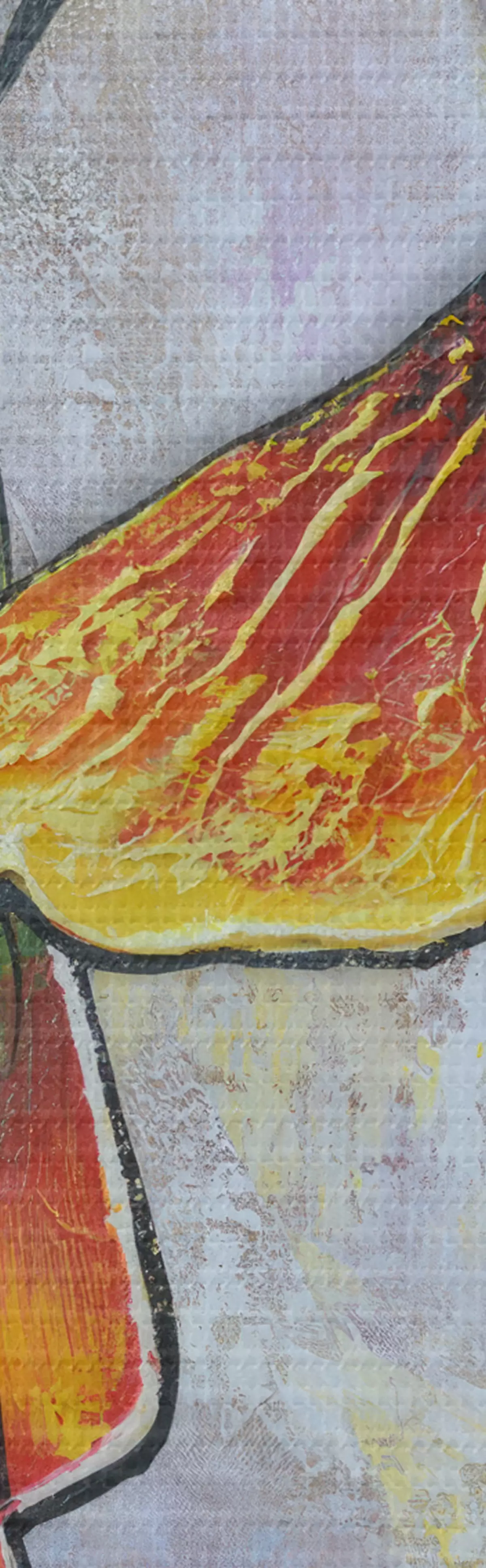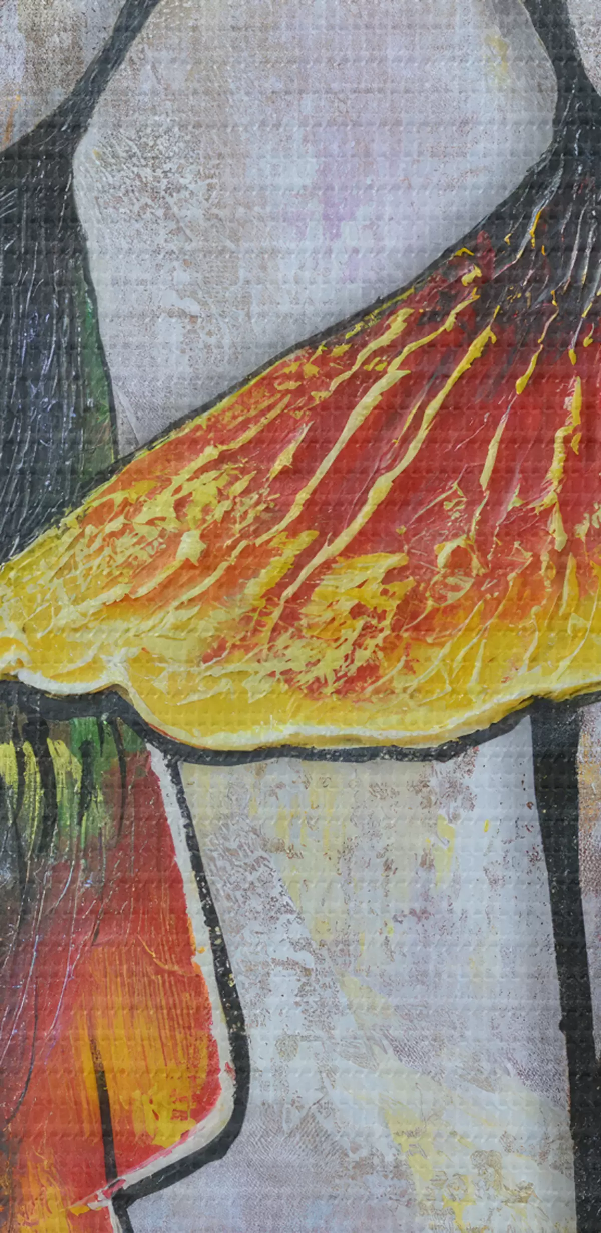 Selle lõuendi peenike niidipunus meenutab professionaalse kunstniku lõuendi pinda.