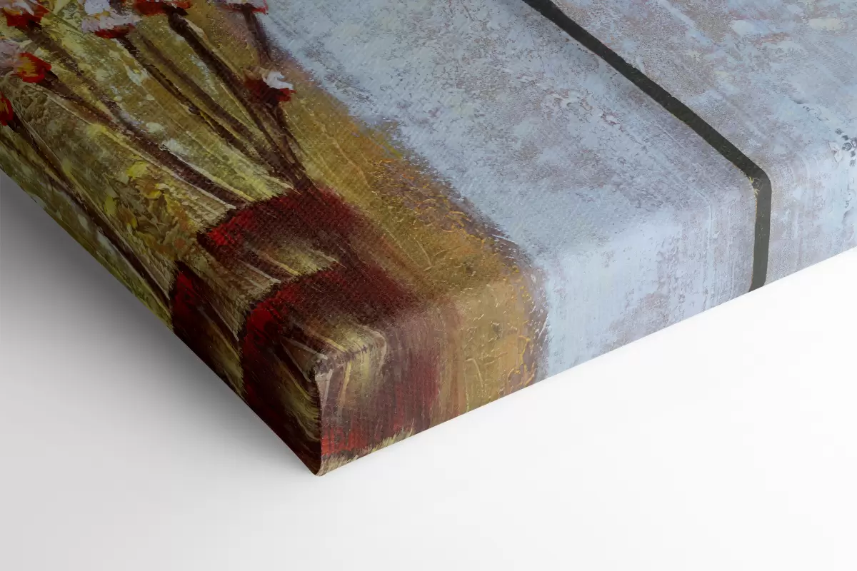 Maali võib riputada kohe pärast selle kättesaamist. Maal on pingutatud 2 cm laiusele puidust kandikule.