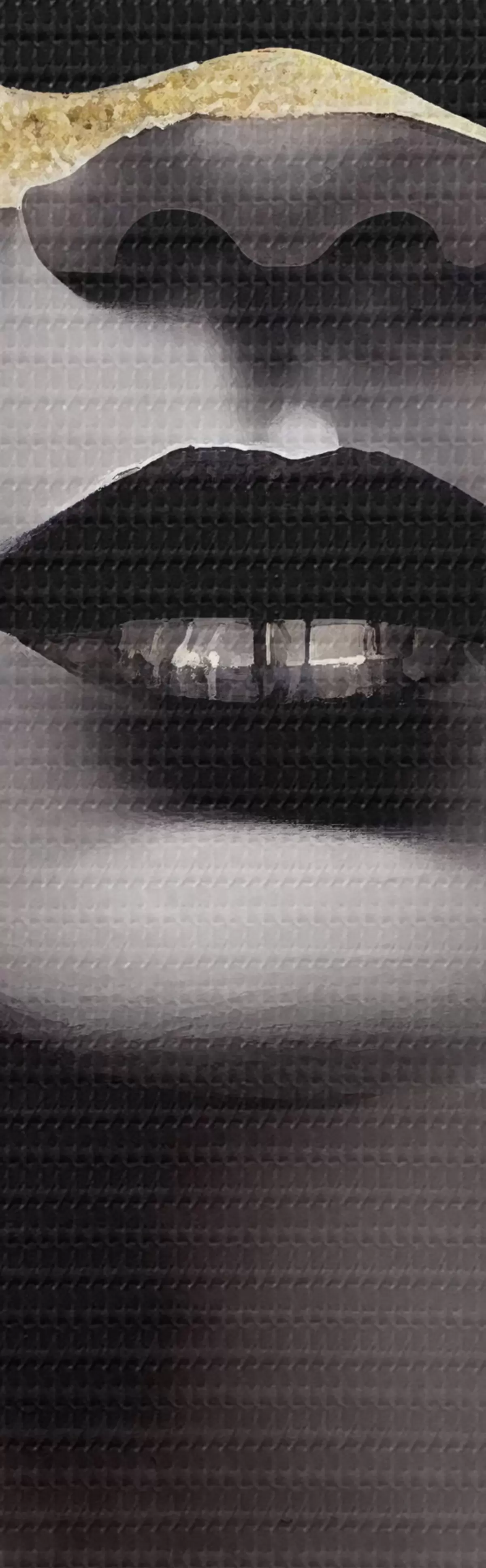 Selle lõuendi peenike niidipunus meenutab professionaalse kunstniku lõuendi pinda.