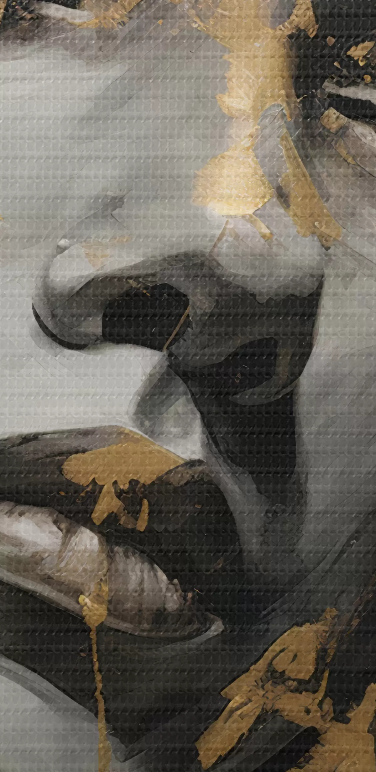Selle lõuendi peenike niidipunus meenutab professionaalse kunstniku lõuendi pinda.