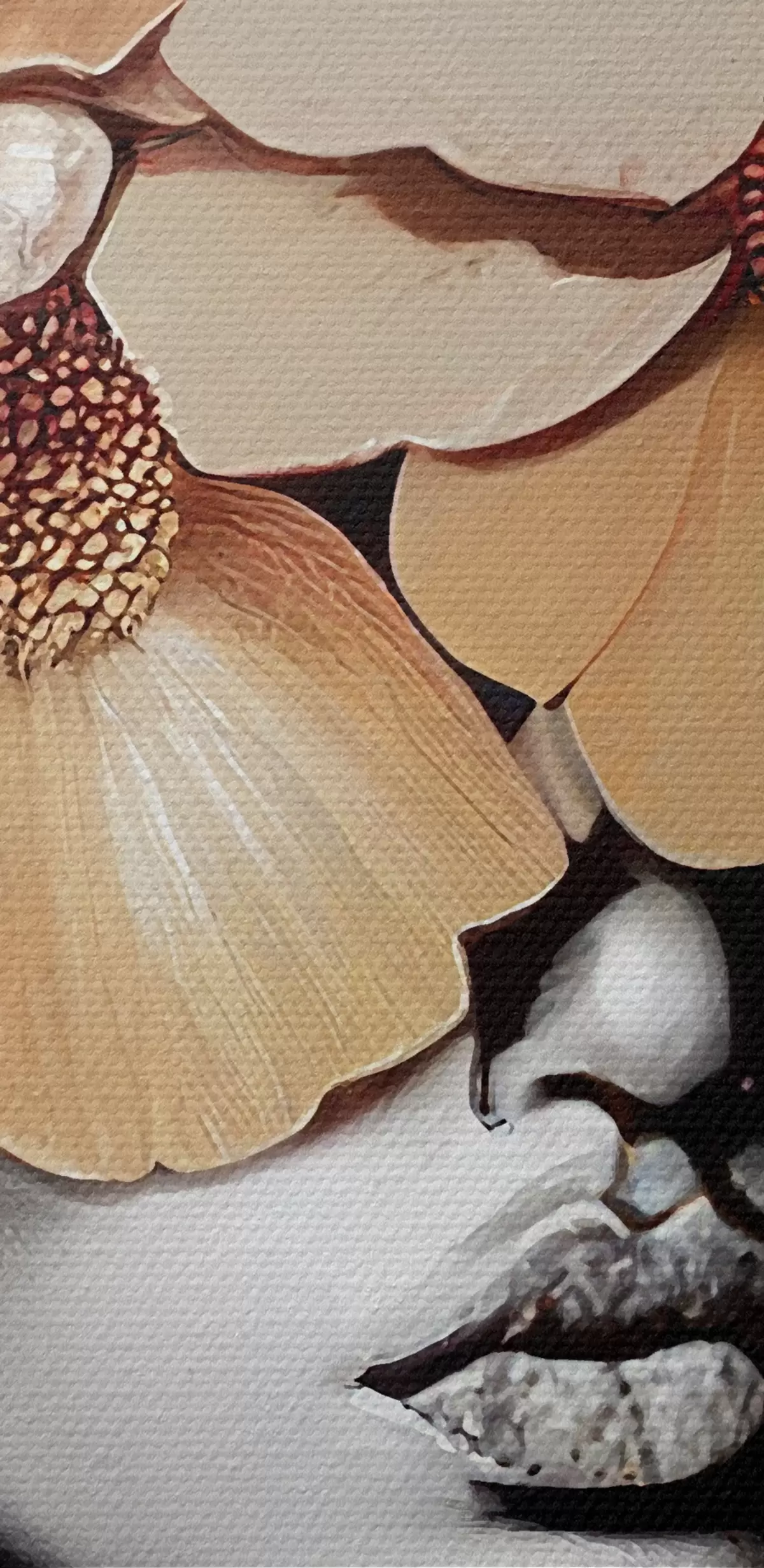 Selle lõuendi peenike niidipunus meenutab professionaalse kunstniku lõuendi pinda.