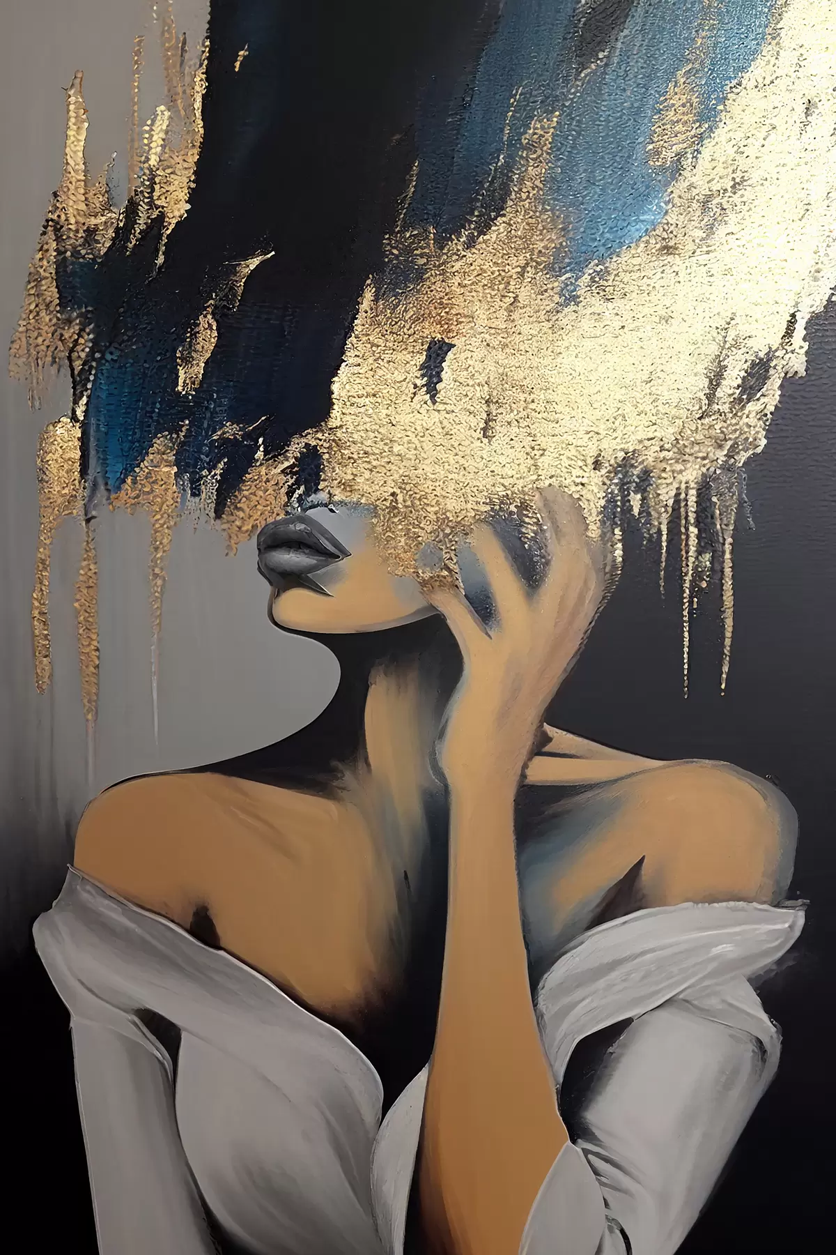 Maalid Noor naine, kelle nägu on kaetud musta akvarellvärviga Nr s34863