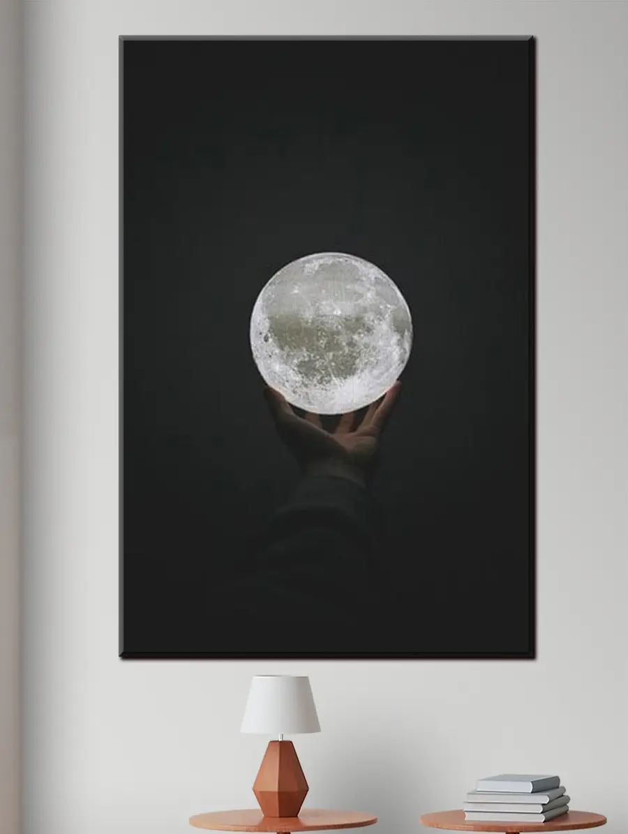Tekstuuriga abstraktne maakera ja planeet mustal taustal, modernne minimalistlik kunst