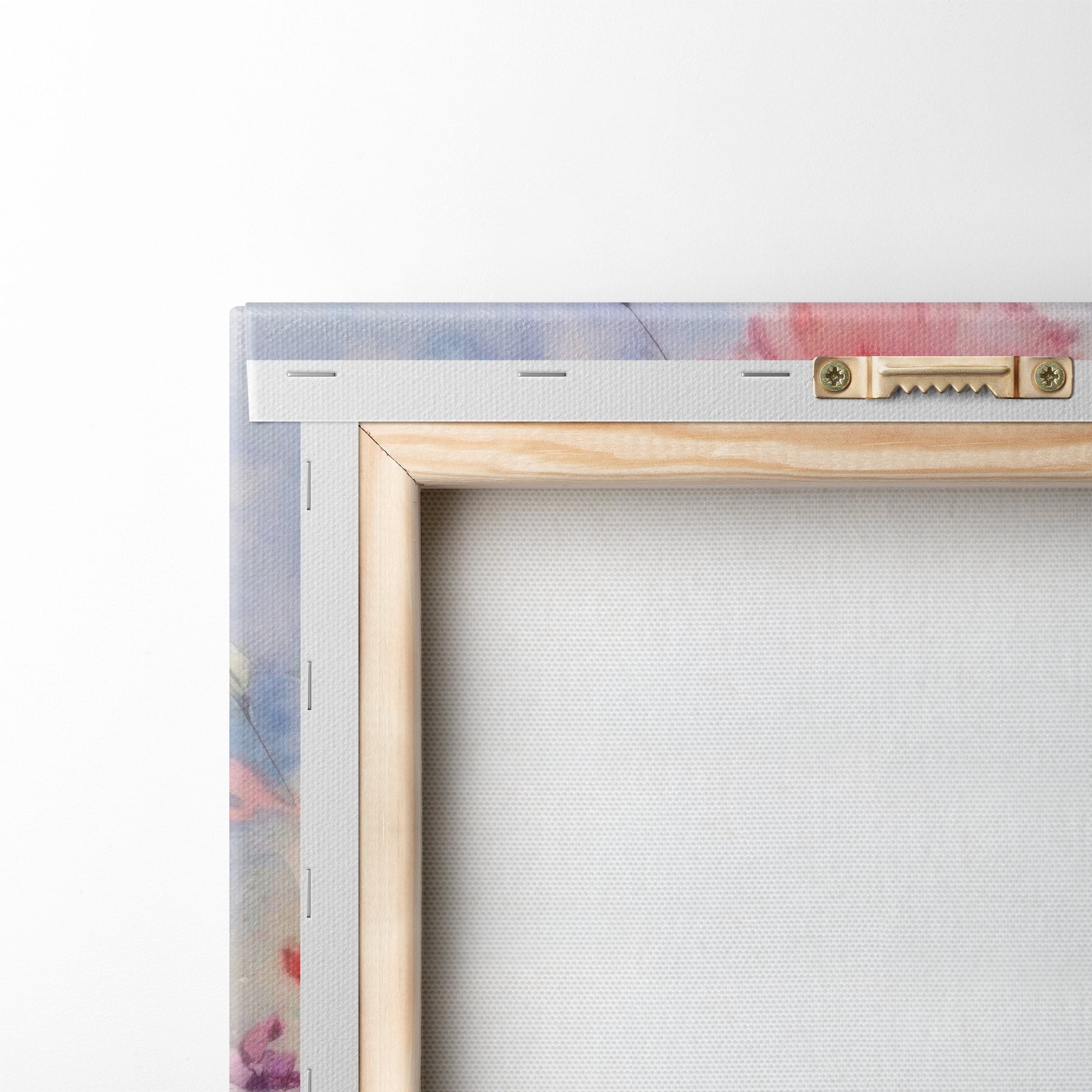 Me müüme pilte kanderaamidel - see on puidust raam, millele lõuend on pingutatud. Seda pilti ei ole vaja raamida, seda võib riputada otse seinale.