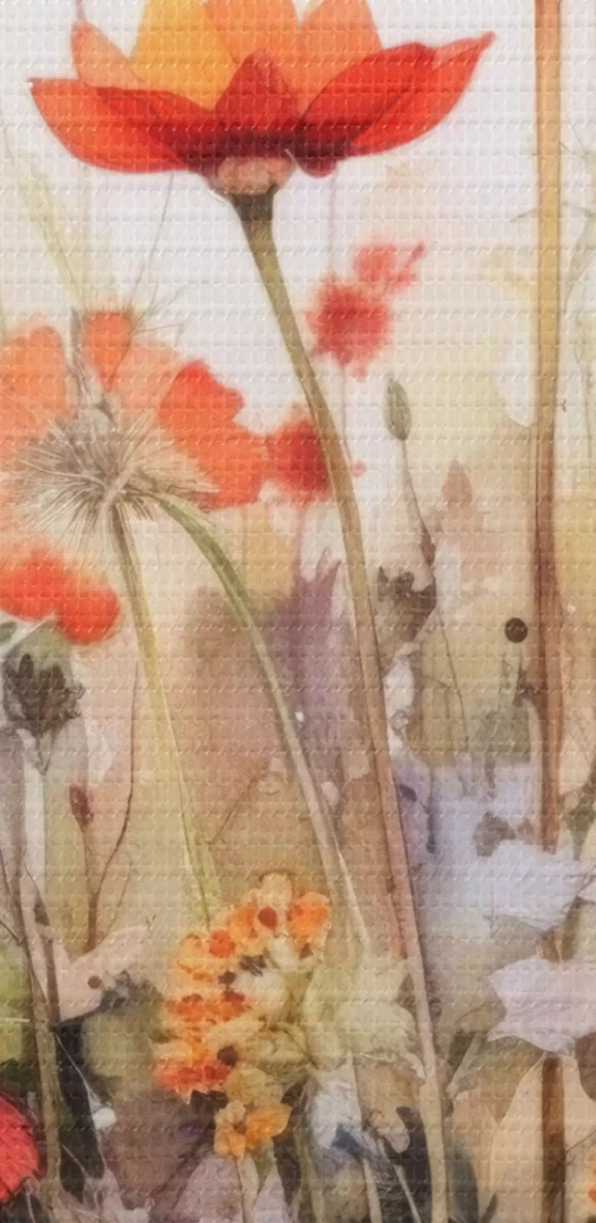 Selle lõuendi peenike niidipunus meenutab professionaalse kunstniku lõuendi pinda.