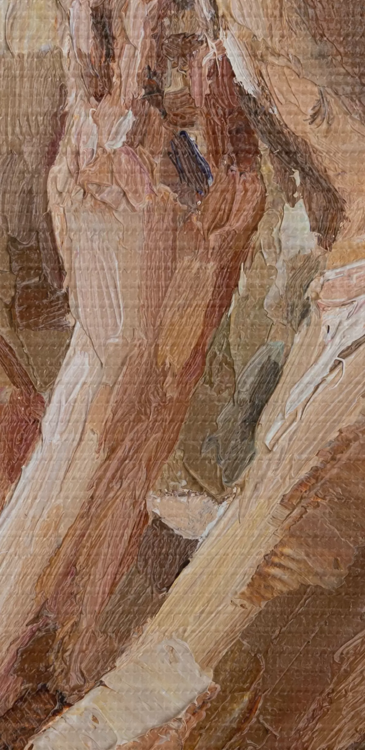 Selle lõuendi peenike niidipunus meenutab professionaalse kunstniku lõuendi pinda.