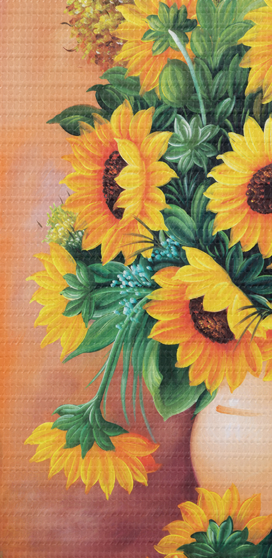 Selle lõuendi peenike niidipunus meenutab professionaalse kunstniku lõuendi pinda.