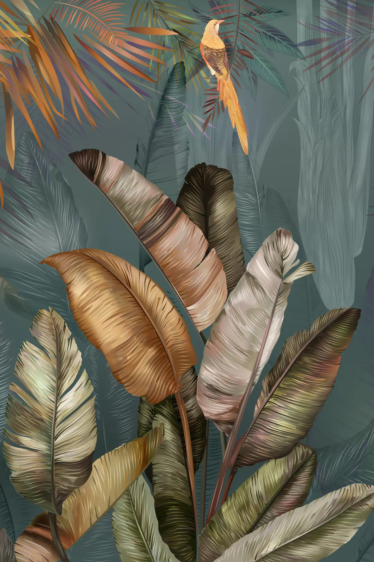 Maalid Elava tekstuuriga troopilised lehed Nr s35860