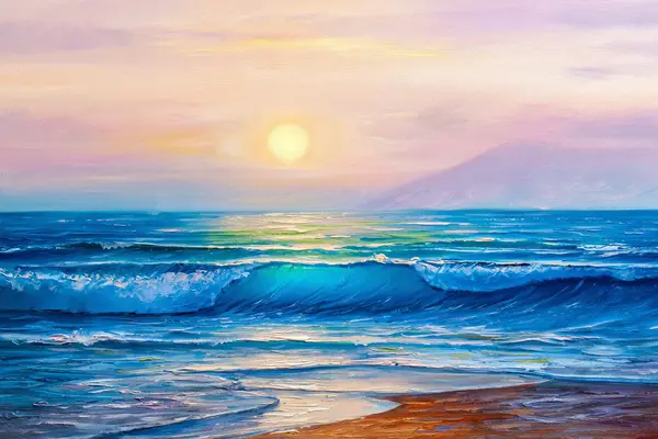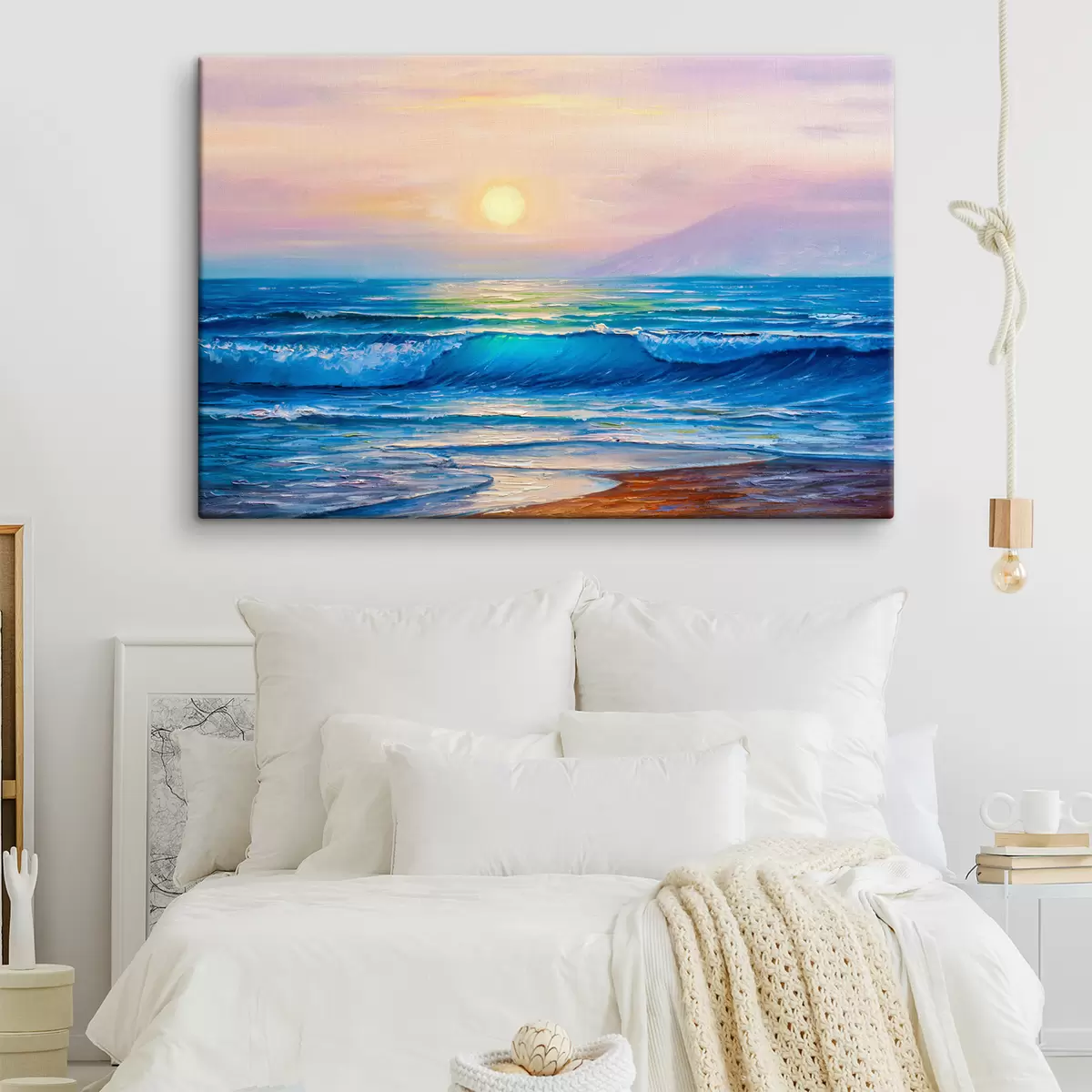 Maalid Roosa päikeseloojang mere taustal Nr s35378