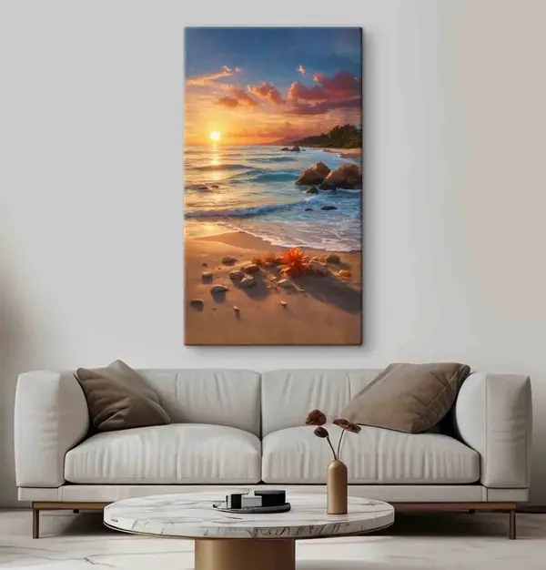 Maalid Päikeseloojang rahulikul ookeanikaldal Nr s35647