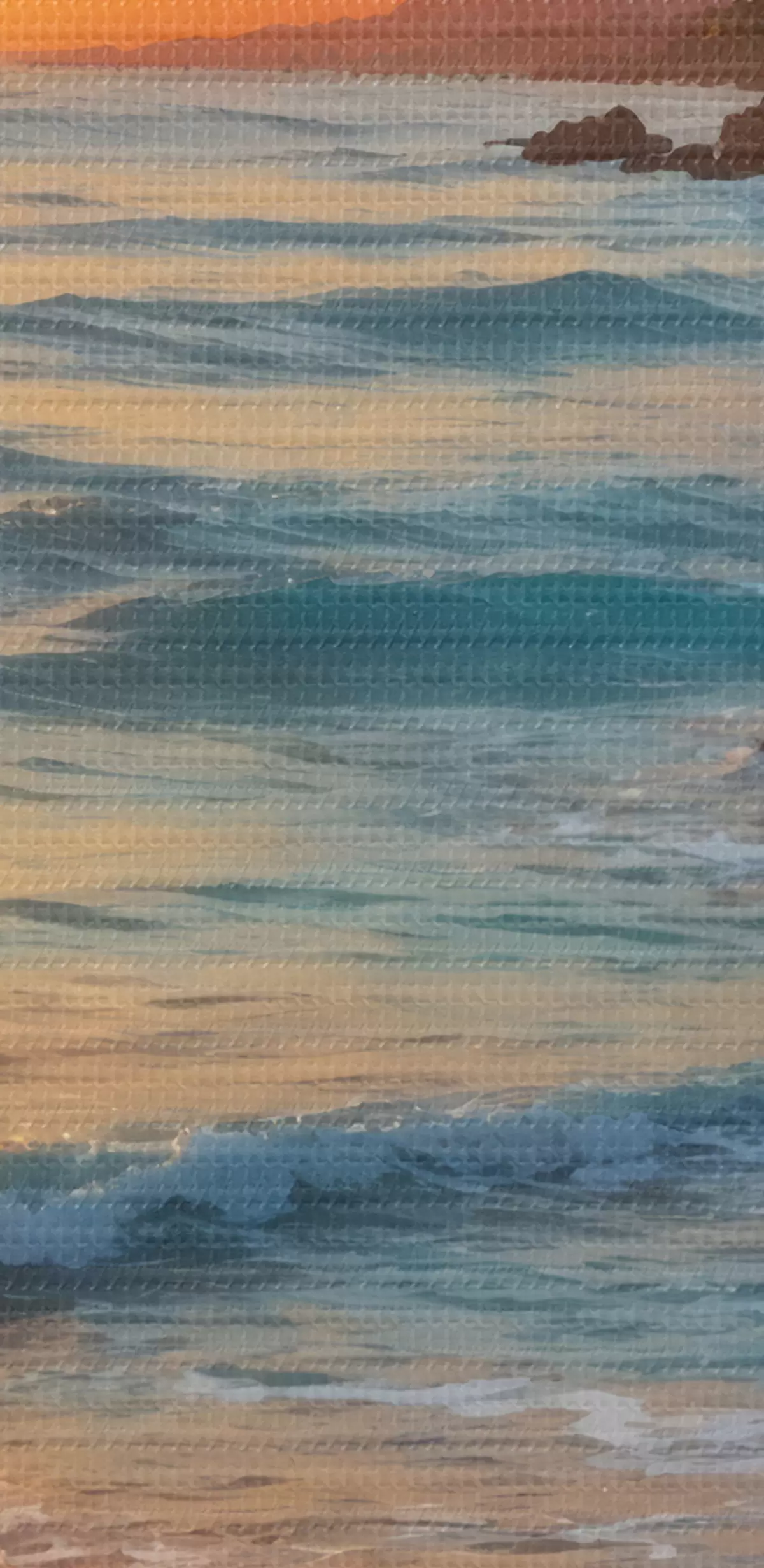 Selle lõuendi peenike niidipunus meenutab professionaalse kunstniku lõuendi pinda.