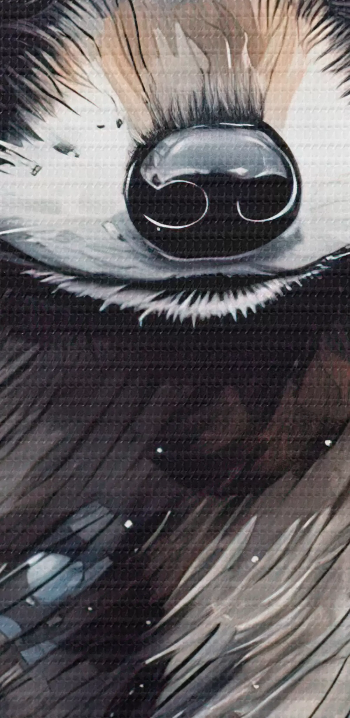 Selle lõuendi peenike niidipunus meenutab professionaalse kunstniku lõuendi pinda.