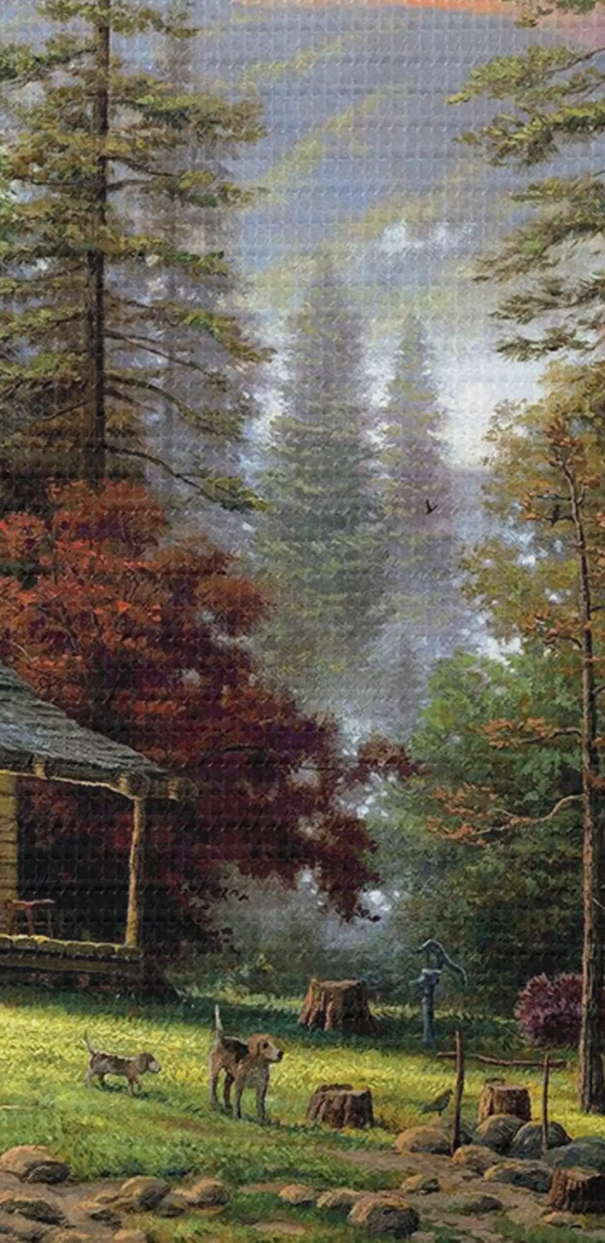 Selle lõuendi peenike niidipunus meenutab professionaalse kunstniku lõuendi pinda.