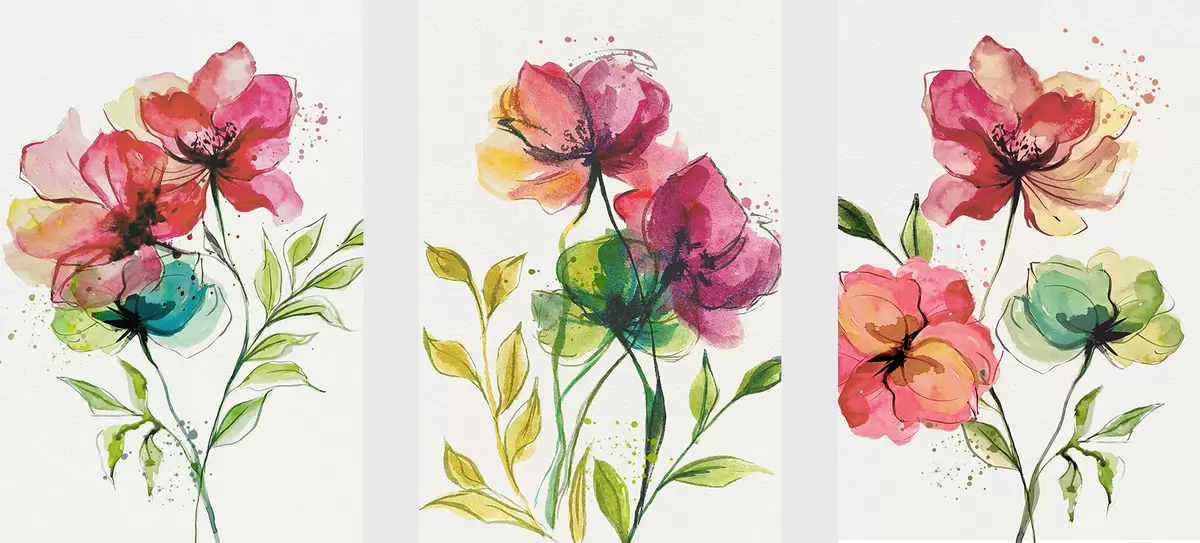 Maalid Õrnad akvarelllilled värvipritsmetega Nr m00340