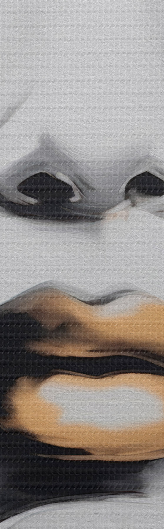 Selle lõuendi peenike niidipunus meenutab professionaalse kunstniku lõuendi pinda.