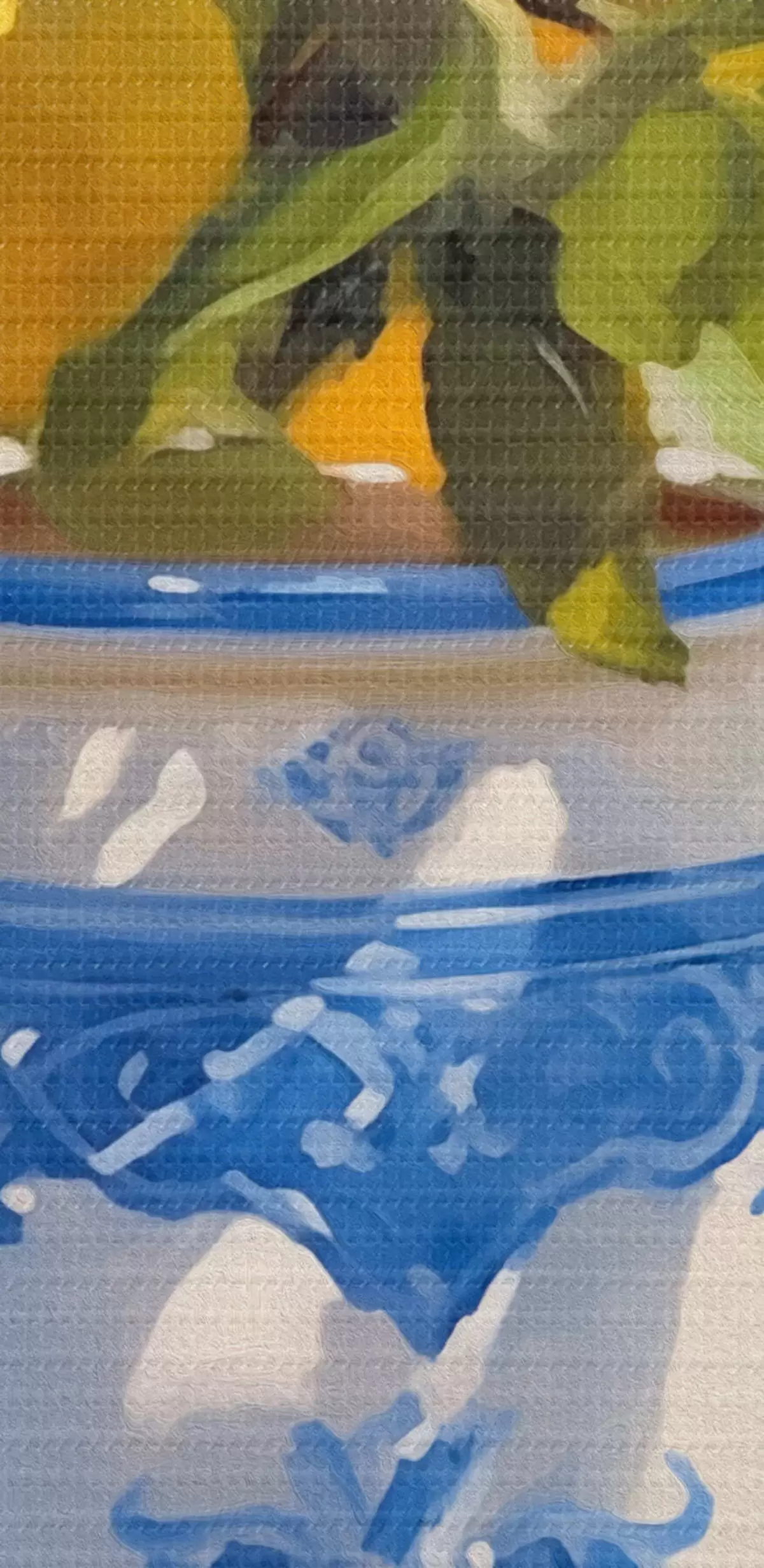 Selle lõuendi peenike niidipunus meenutab professionaalse kunstniku lõuendi pinda.