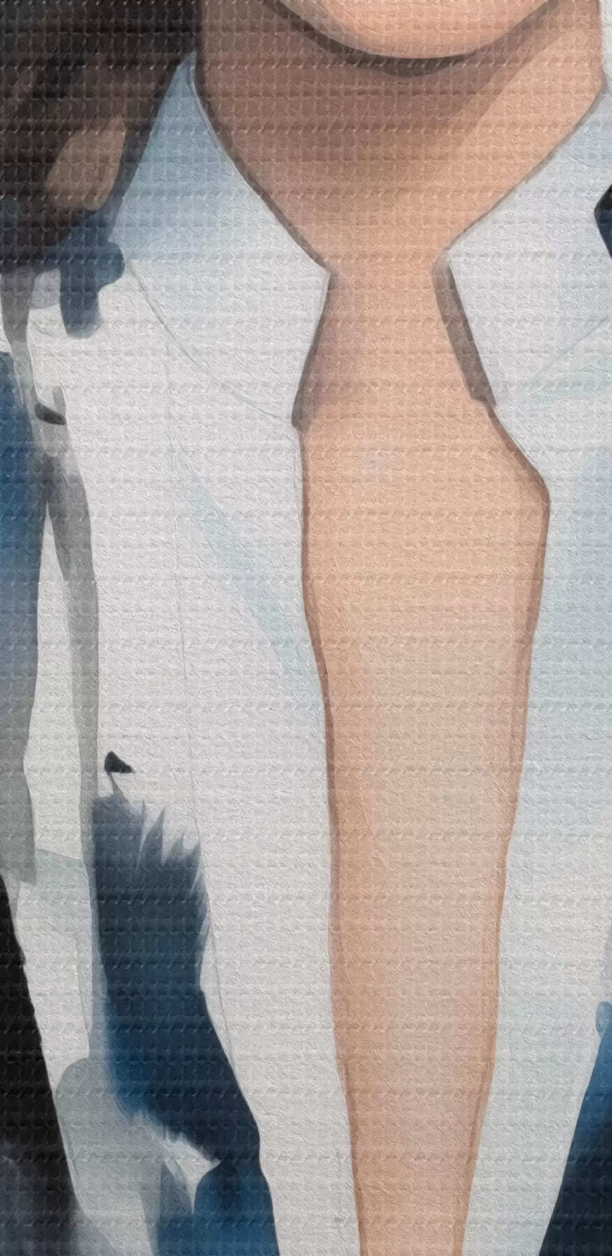 Selle lõuendi peenike niidipunus meenutab professionaalse kunstniku lõuendi pinda.