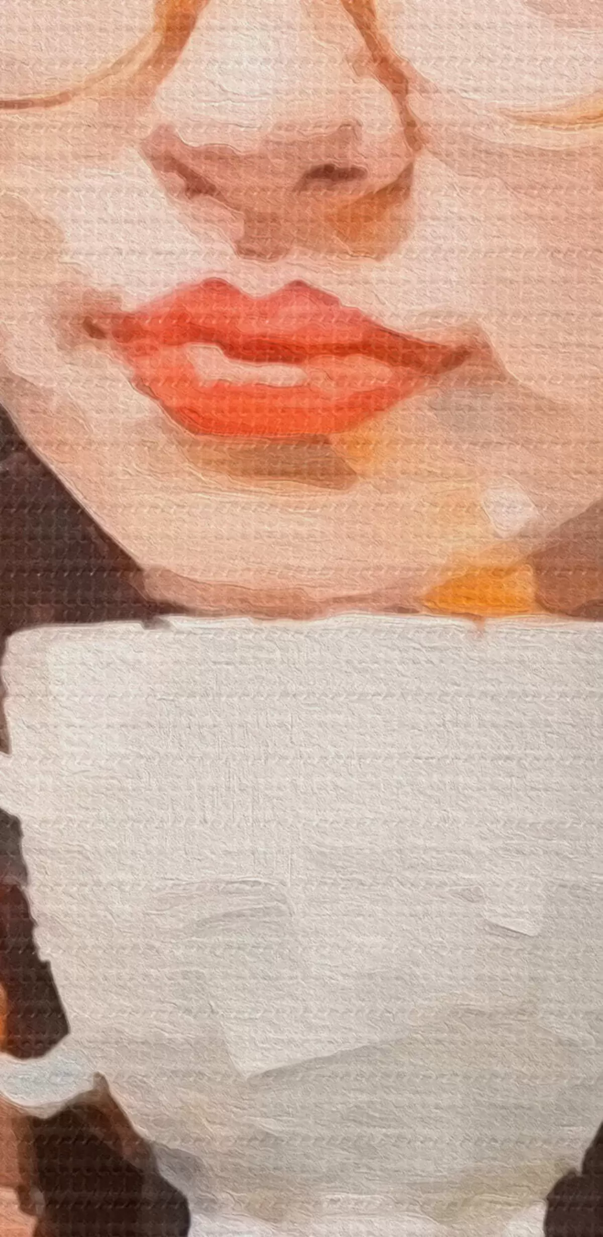 Selle lõuendi peenike niidipunus meenutab professionaalse kunstniku lõuendi pinda.