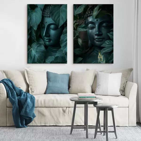 Maalid Meditatiivne Buddha rohelistes lehtedes, budism, troopiline, realism Nr m00447