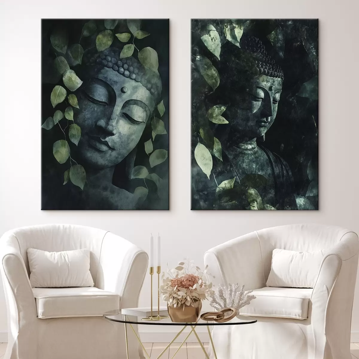 Maalid Roheline Buddha troopiliste lehtedega, akvarellstiilis Nr m00451