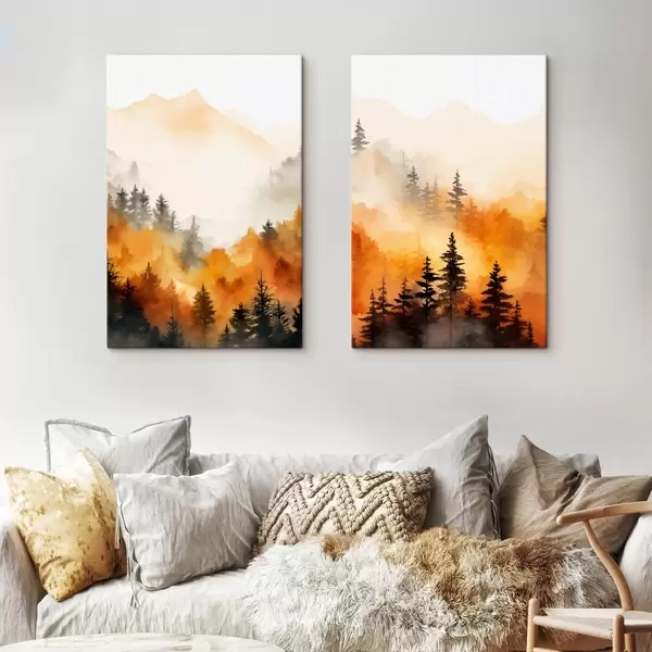 Maalid Maastiku akvarellmaal imitatsioon metsa kõrge männi ja mägedega taustal Nr m00519