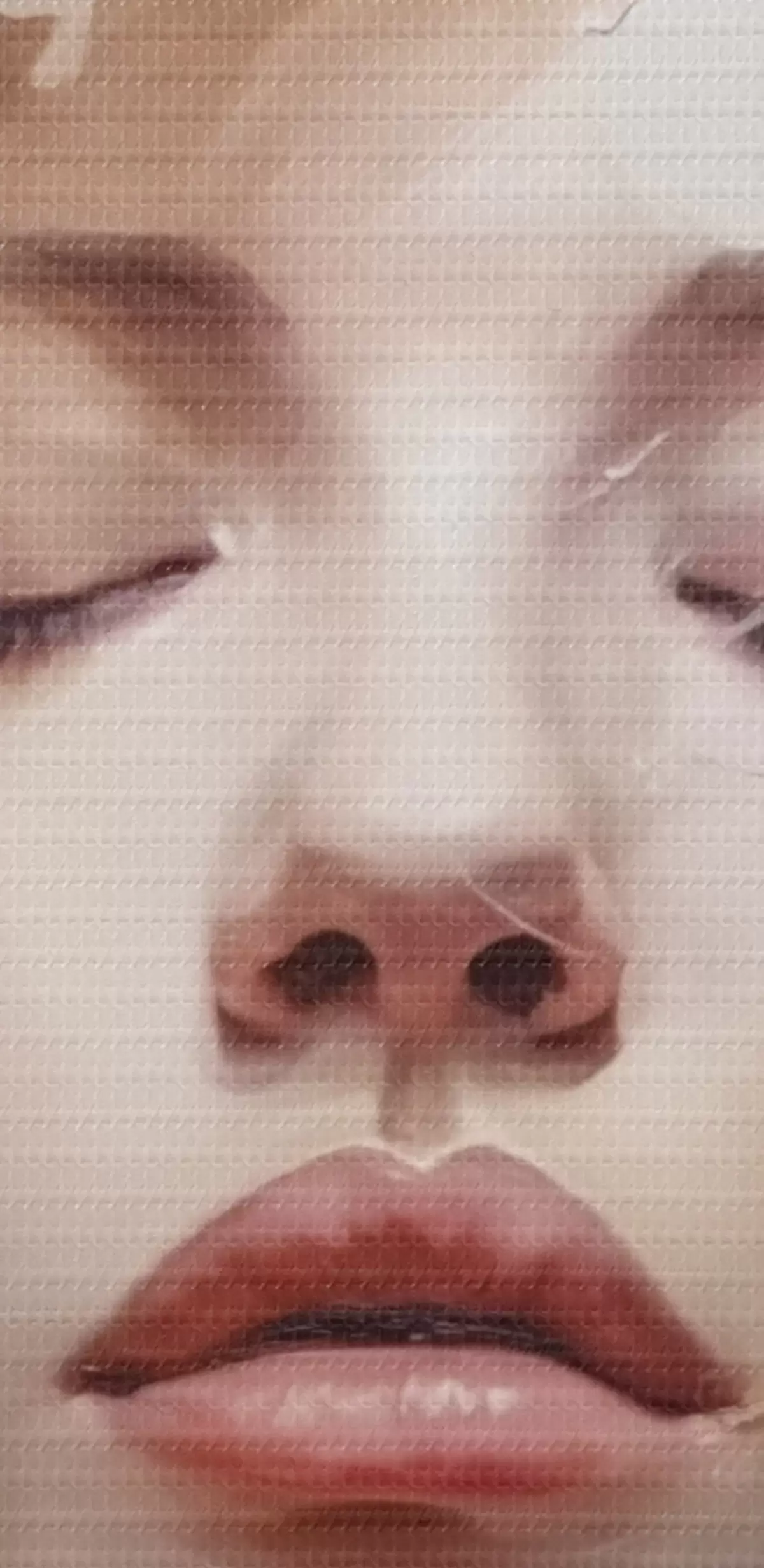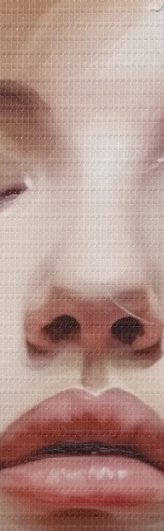 Selle lõuendi peenike niidipunus meenutab professionaalse kunstniku lõuendi pinda.
